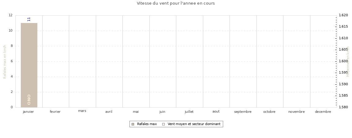 | janvier | 0.1 °C | 4.7 °C | 26.4 °C | 18.9 °C | 11.8 °C | 1.6 km/h | 11.0 km/h | ONO |